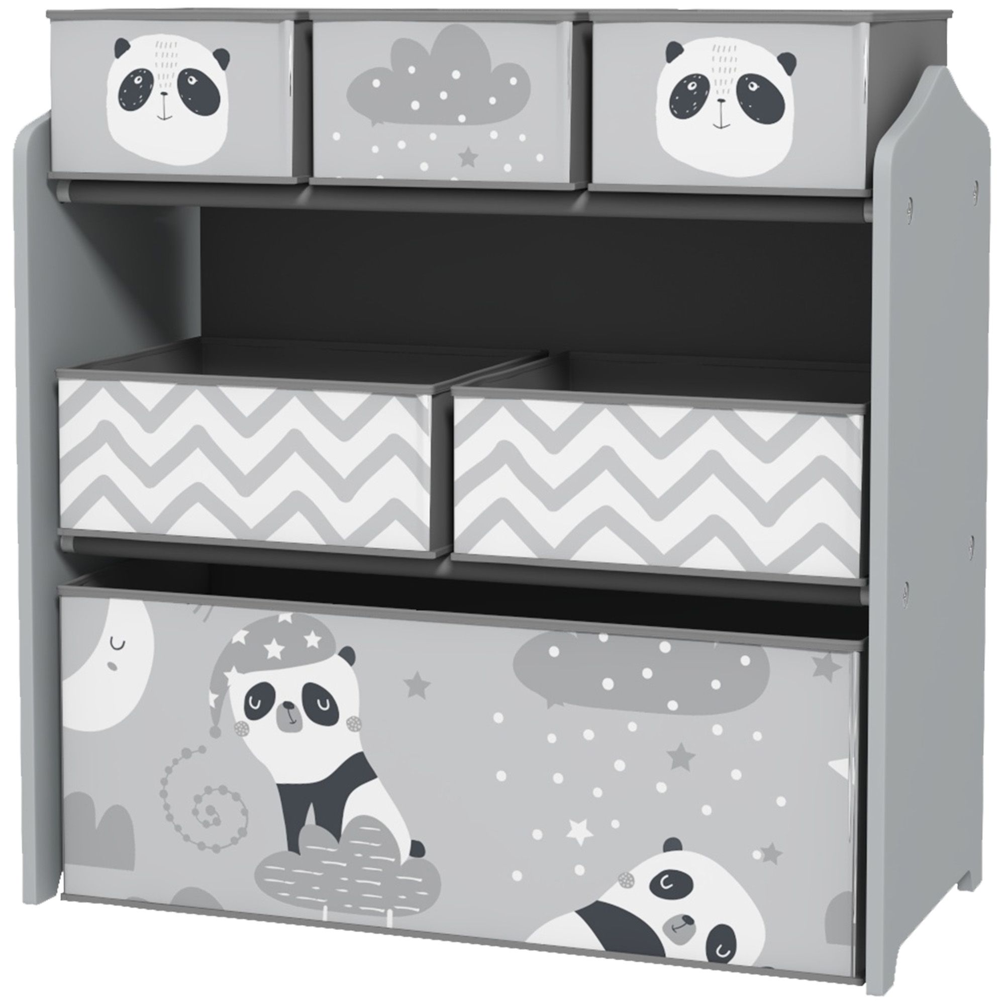 Transform your children's space into a dream place with the Qaba toy organizer. With its gray design and panda print decorated boxes, this piece of furniture is not only a decorative element, but also a practical solution for keeping order. It features 6 removable non-woven fabric boxes that make it easy to organize toys, books and more. Made of safe and durable materials, it is ideal for creating a tidy and safe environment in any child's room.