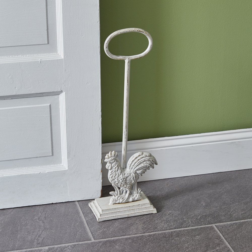 Introducing our Rooster Door Stop with Handle, the perfect combination of functionality and style for your home. This charming door stop features a sturdy handle for easy transport and a whimsical rooster design that adds a touch of farmhouse flair to any room. Crafted from durable materials, this door stop is designed to hold your doors securely in place, preventing them from slamming shut. Say goodbye to pesky drafts and keep your doors open with this adorable and practical accessory. Add a touch of country charm to your home with our Rooster Door Stop with Handle today!