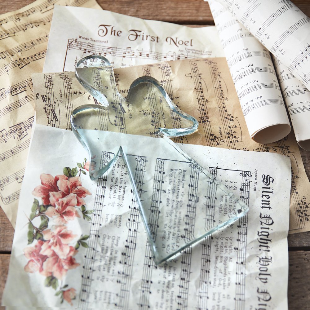 Our Blocked Glass Angel emits peace and faith. The organic handmade nature of the glass is a unique and charming feature. Use as a paperweight on a desk.