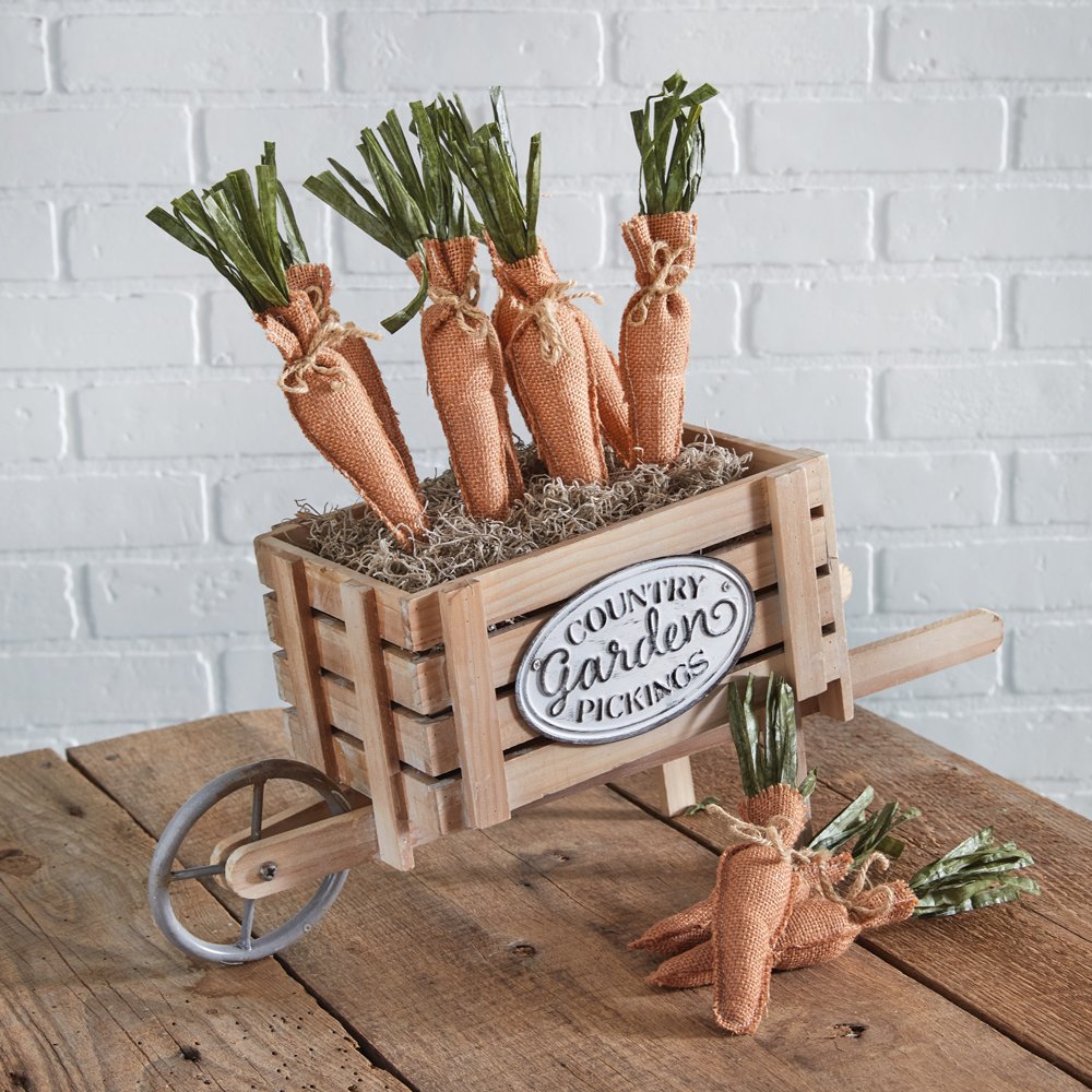 These burlap carrots are a quirky way to decorate an Easter basket. Display on a table or a tray to embrace the spring season. Carrots come tied together with jute. Each carrot measures 1½''W x 8''H.